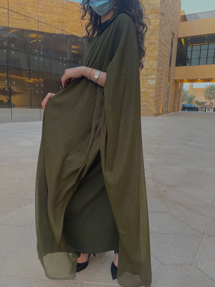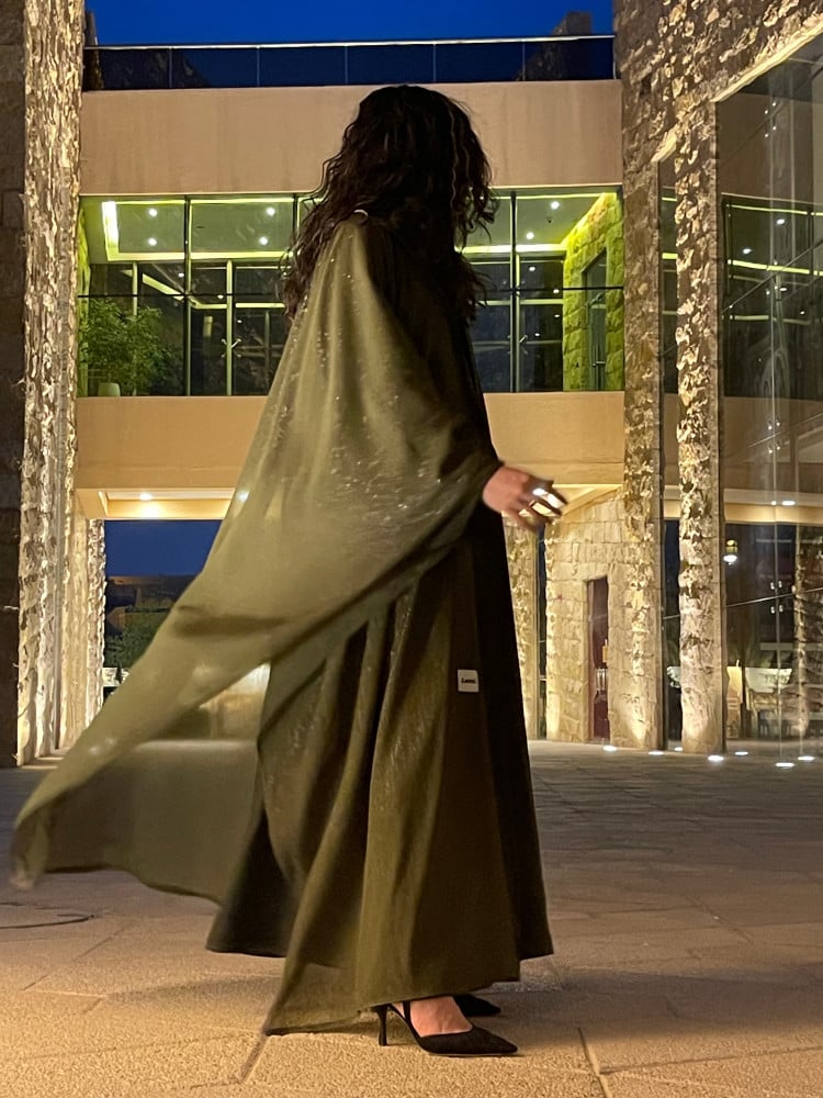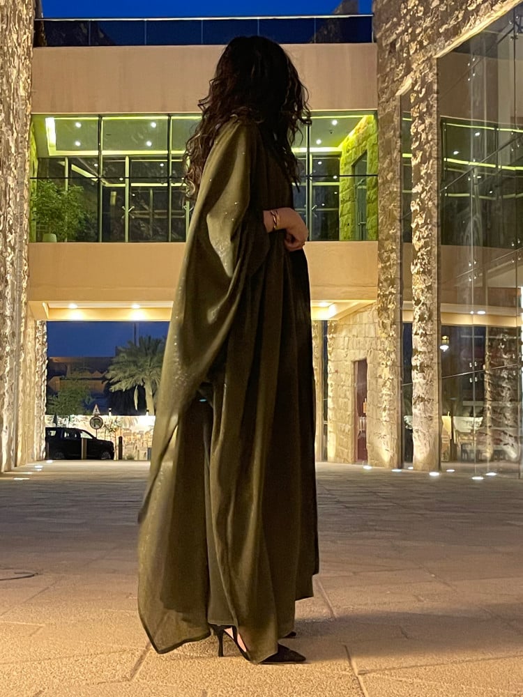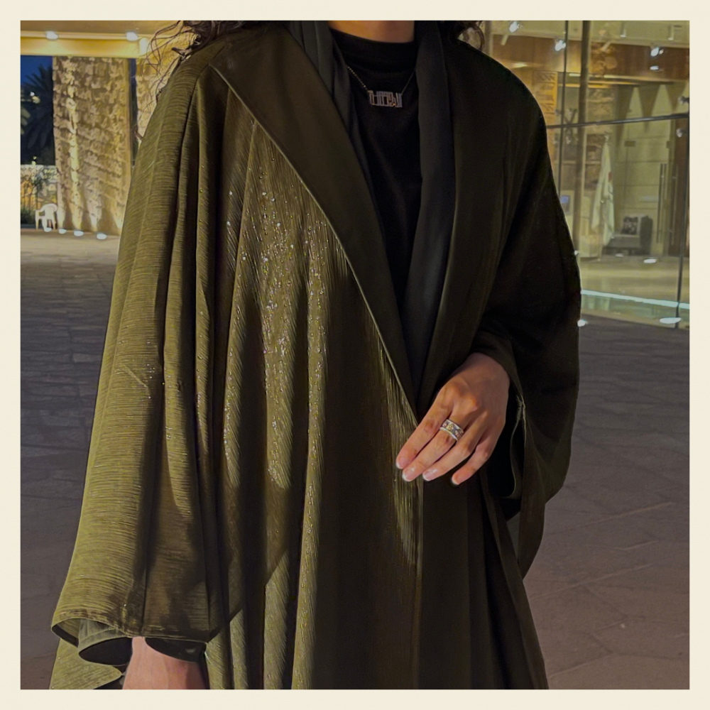 عبايه بشت كريب قلاسيه لمعه، مبطن ب كريب زيتي