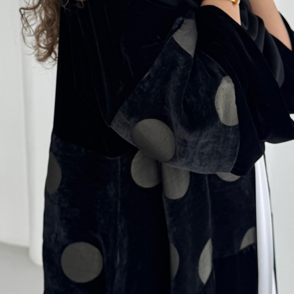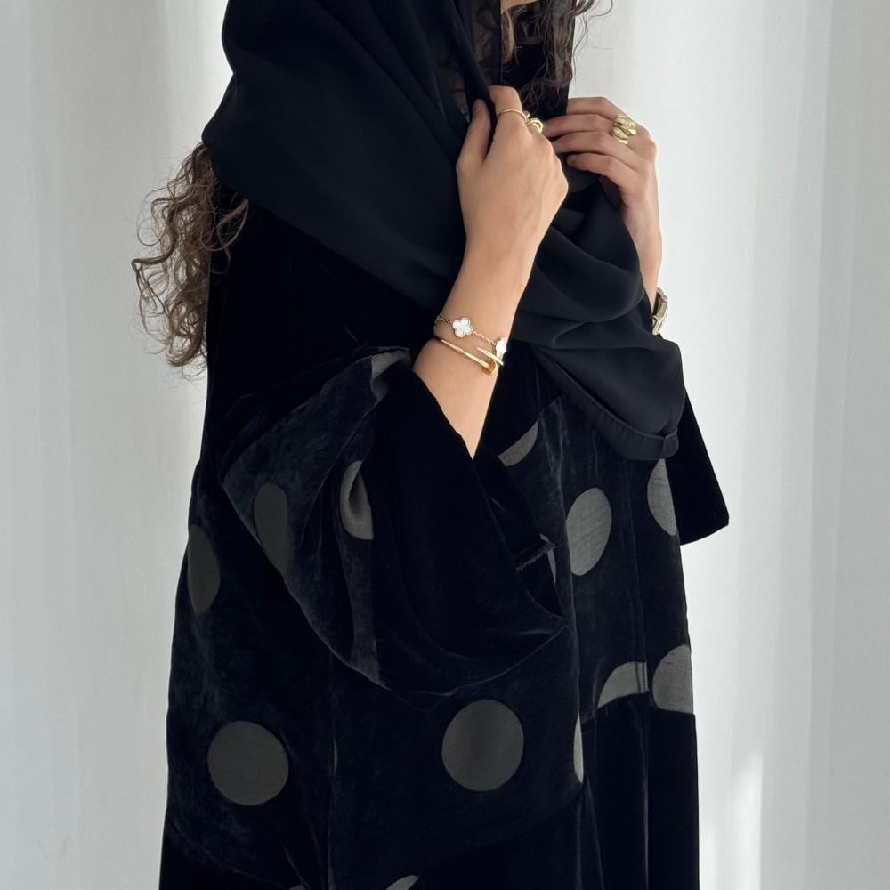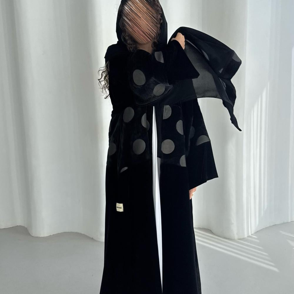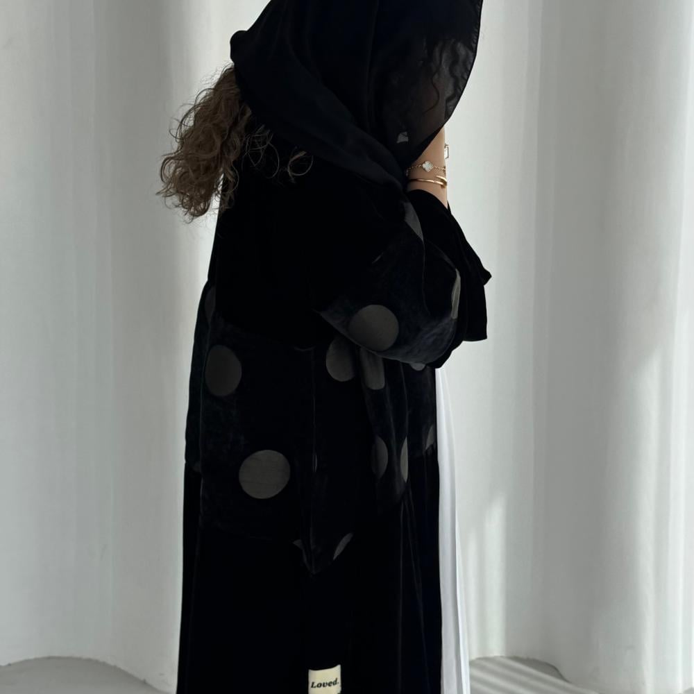 مخمل اسود كلوش و بالنص مخمل منقط ، شامل الطرحه