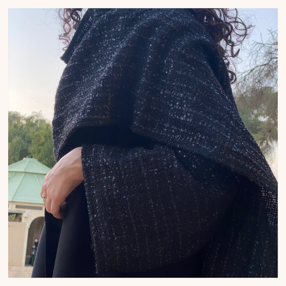 عبايه شامواه بشال شانيل ، ووممكن لبسها ب 3 طرق