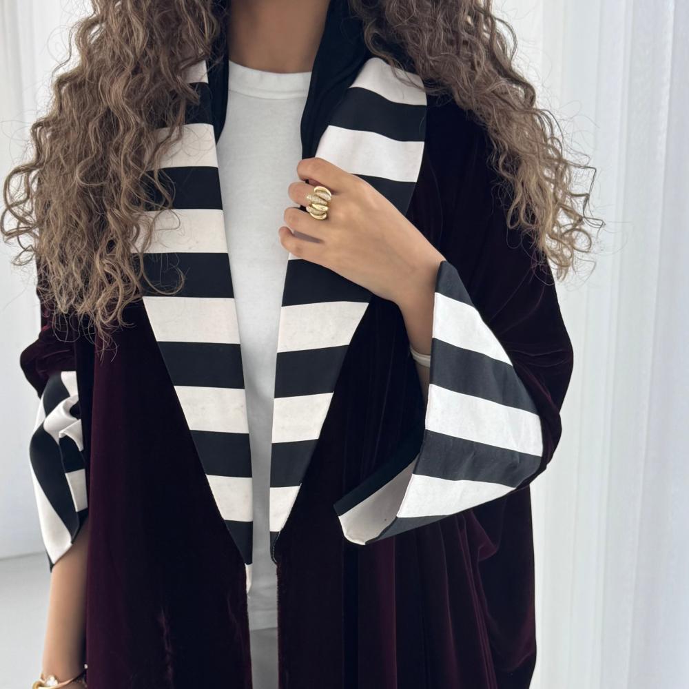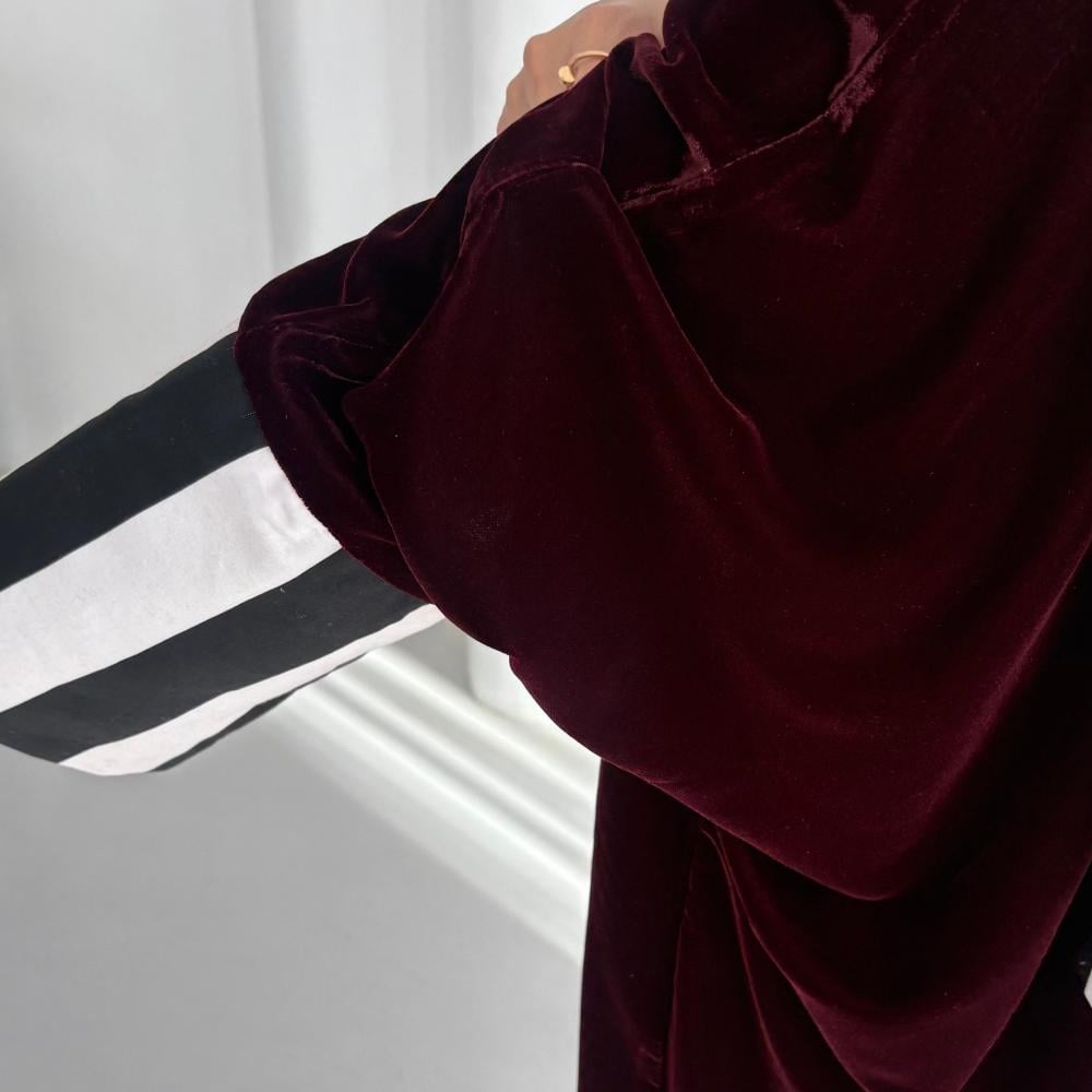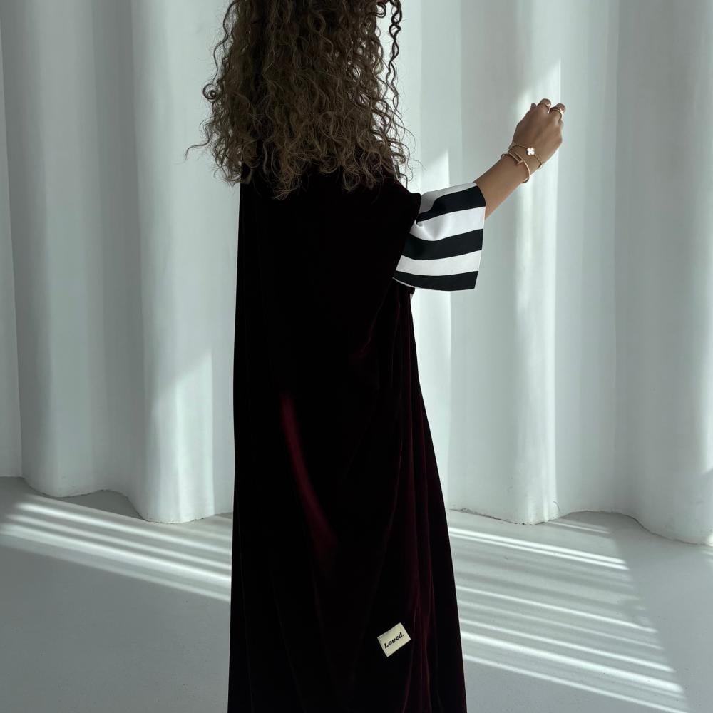 مخمل عنابي بأكمام مخططه ، قصة فراشه شامل الطرحه عنابي