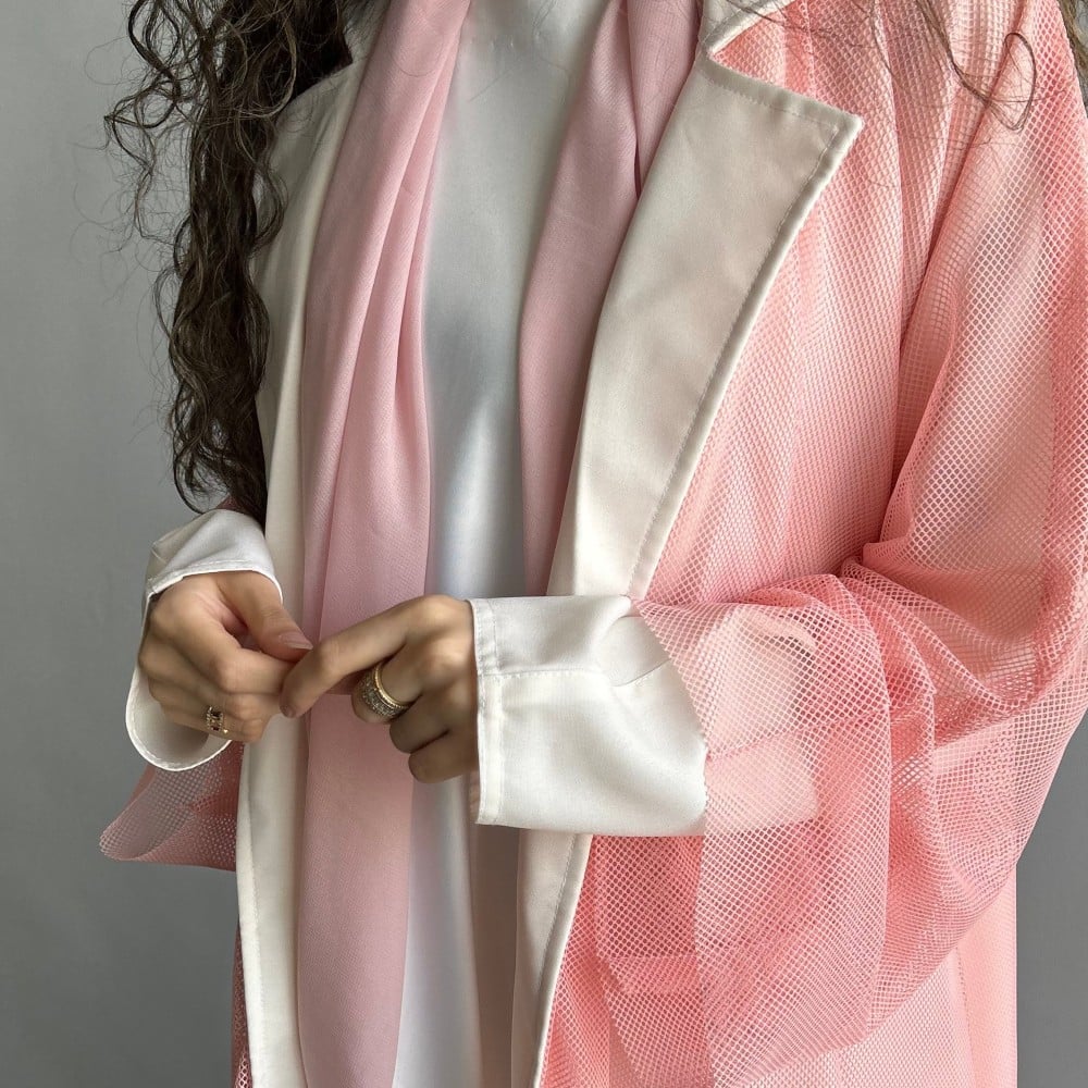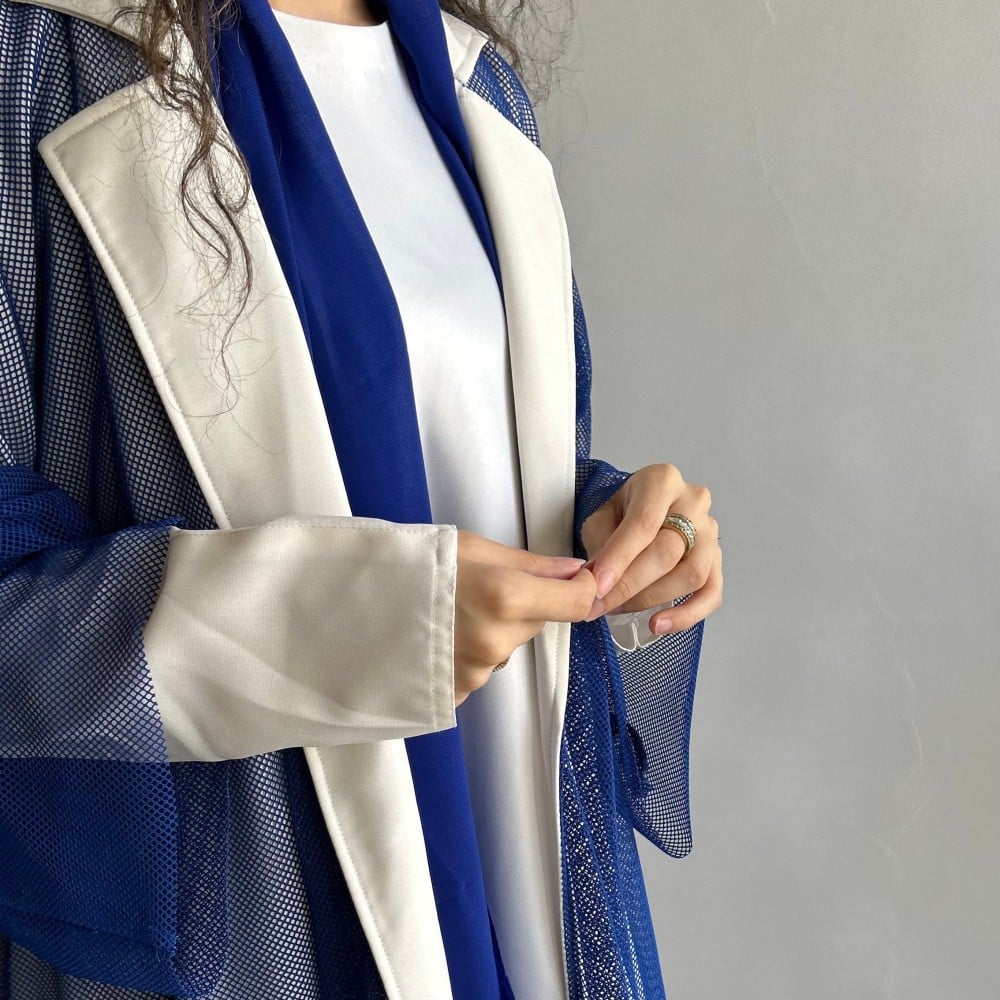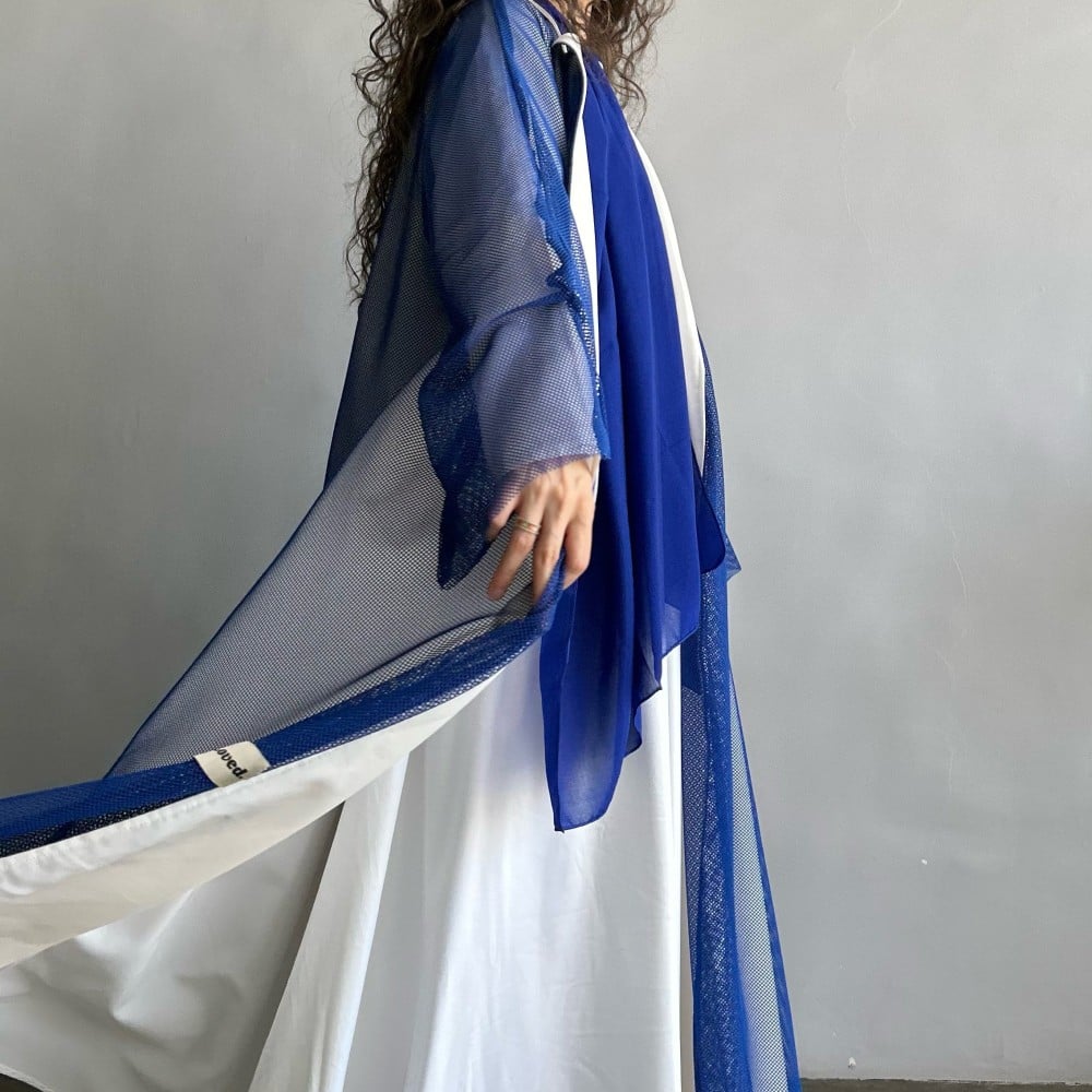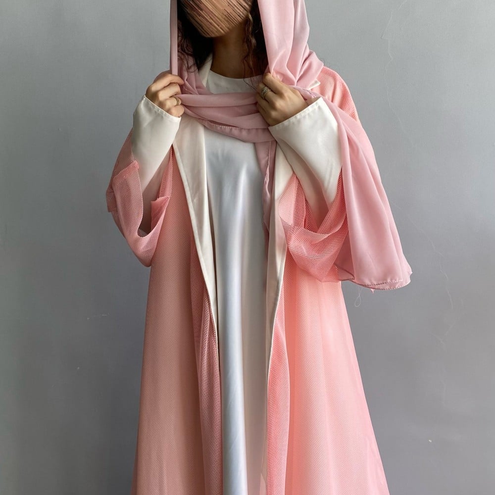 عبايه كتان اسود كلوش بياقه ، وقماش خيش ذهبي شامل الطرحه باذراف خيش