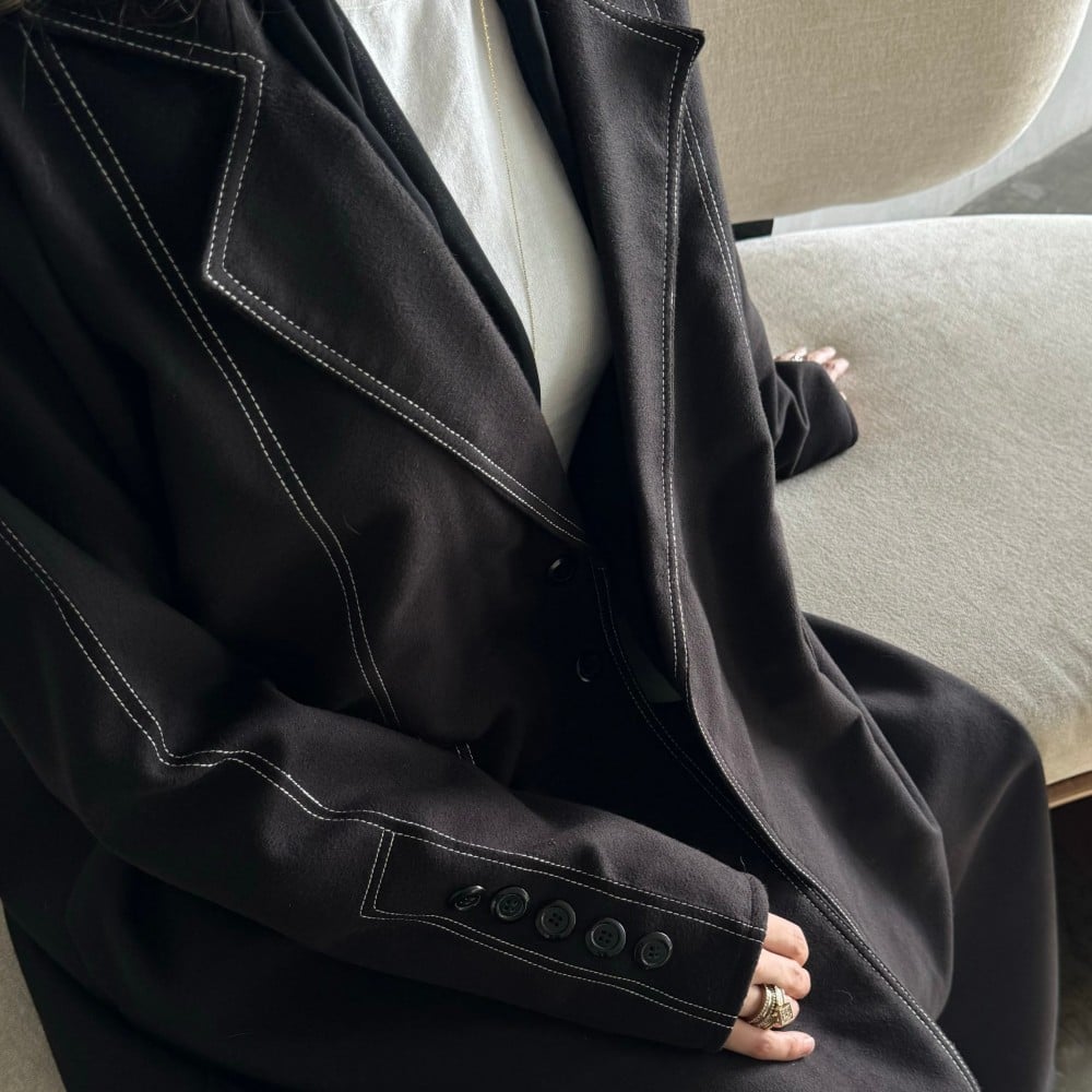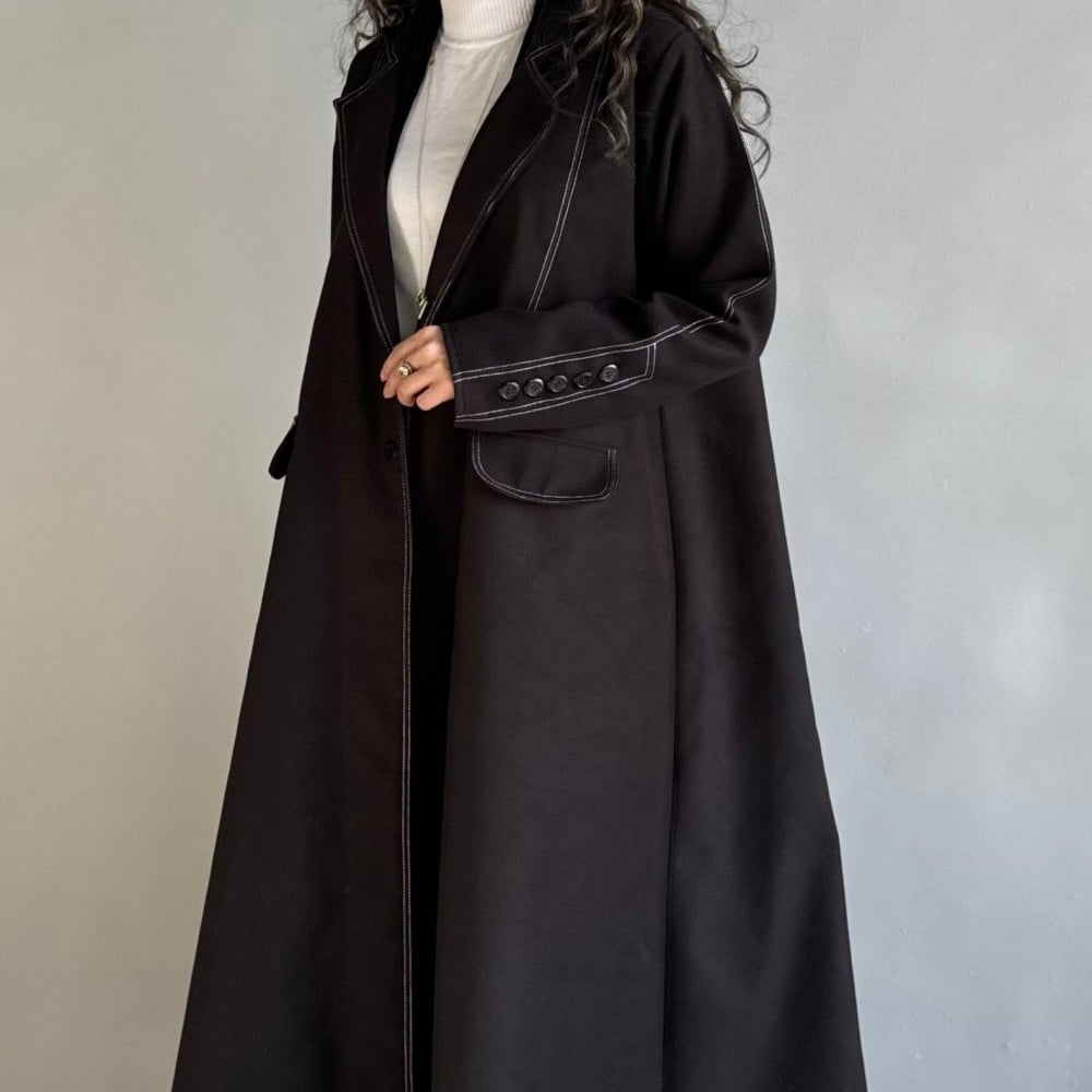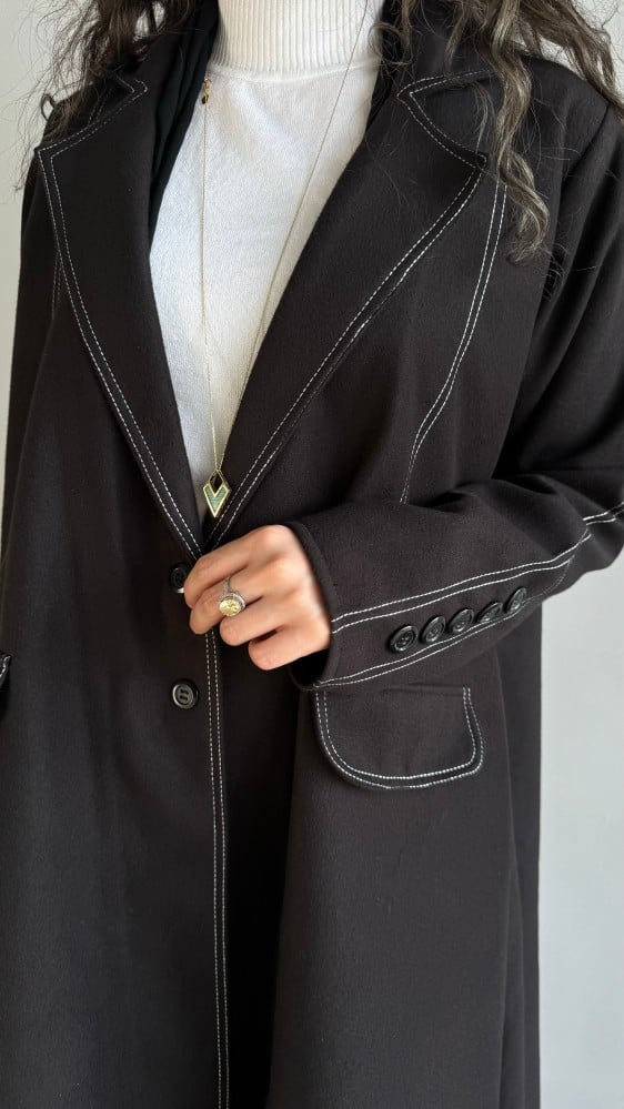 عباية قماش جوخ اسود نص كلوش ، ب ياقه ، و تطريز باللون الابيض