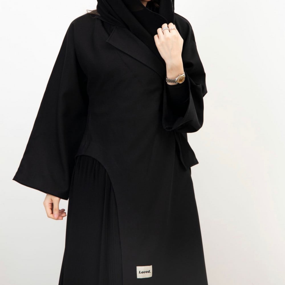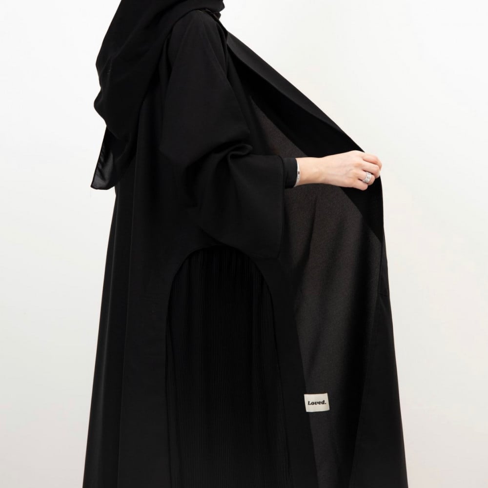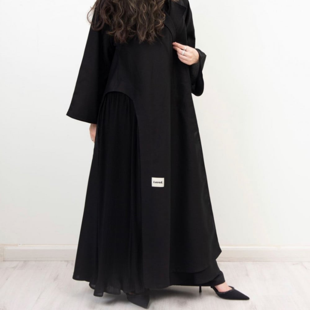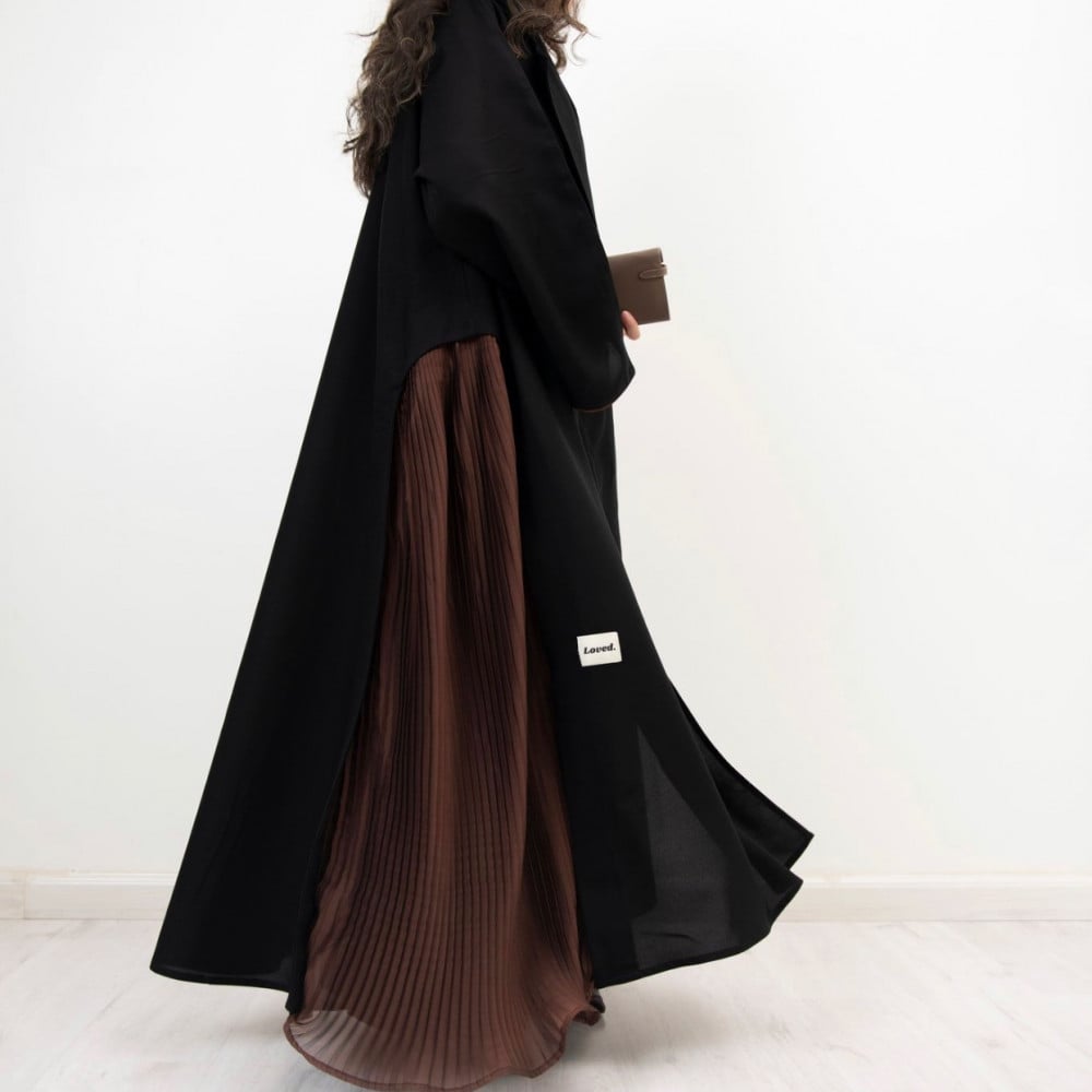 عبايه كلوش لف ، ب قماش كتان اسود و قماش مكسر بالجمب فقط ، بياقه ، شامل الطرحهتتنفذ بالمكسر الاسودتتنفذ بالمكسر البني