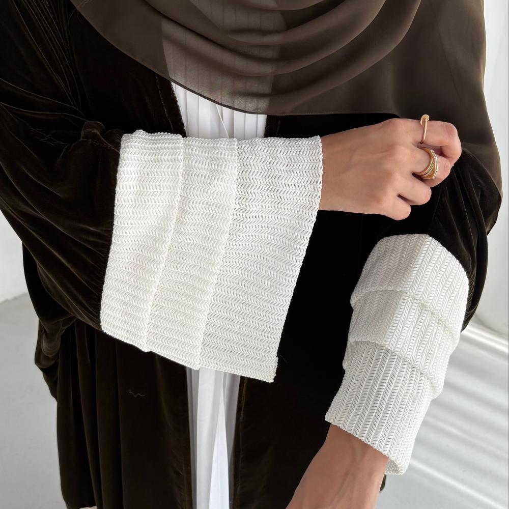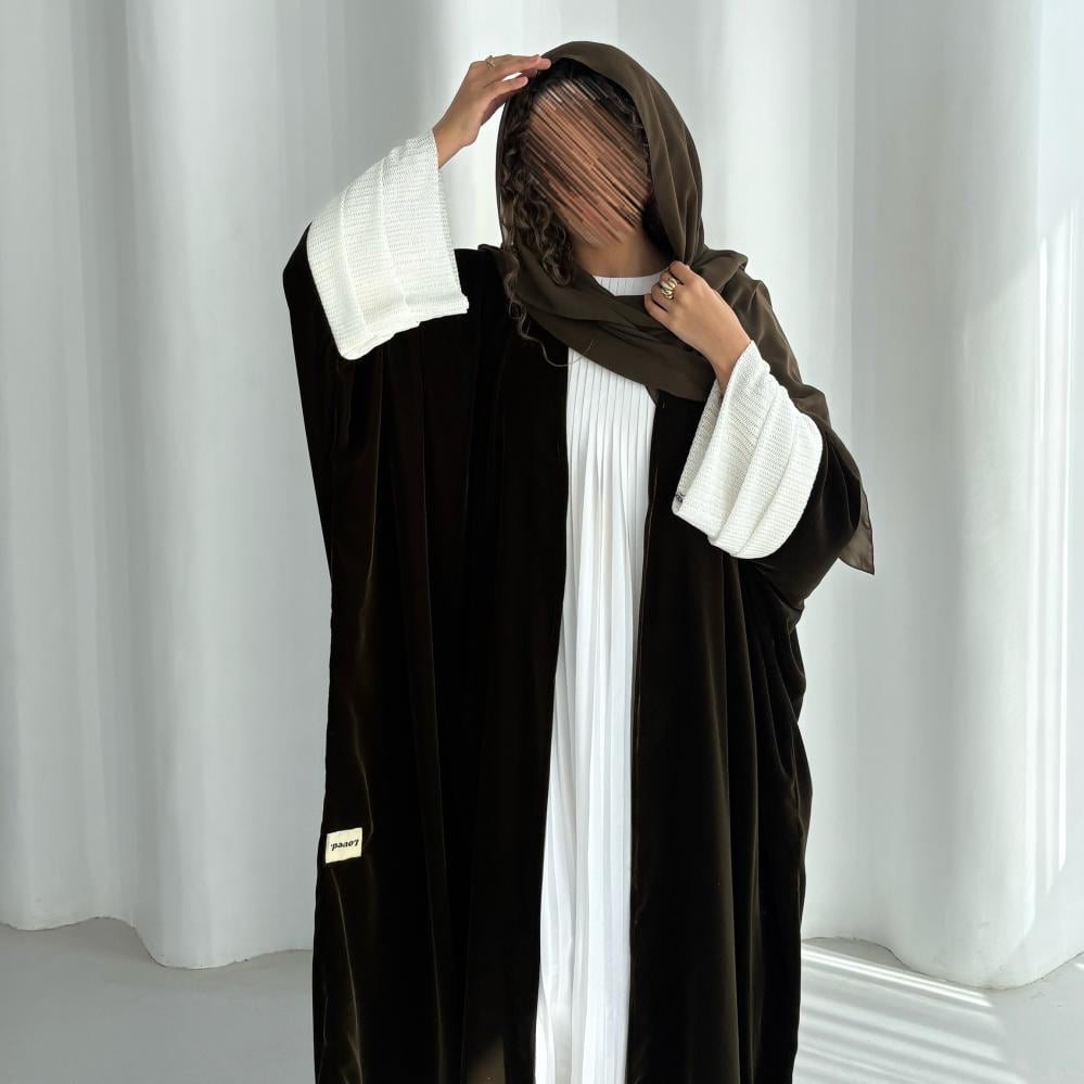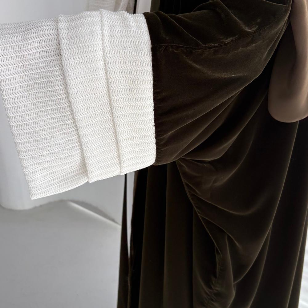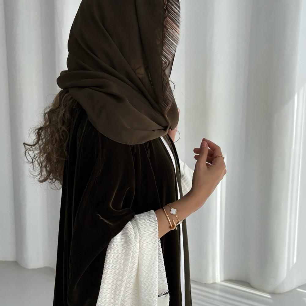 مخمل زيتي قصه فراشه ب اكمام بيضا شامل الطرحه