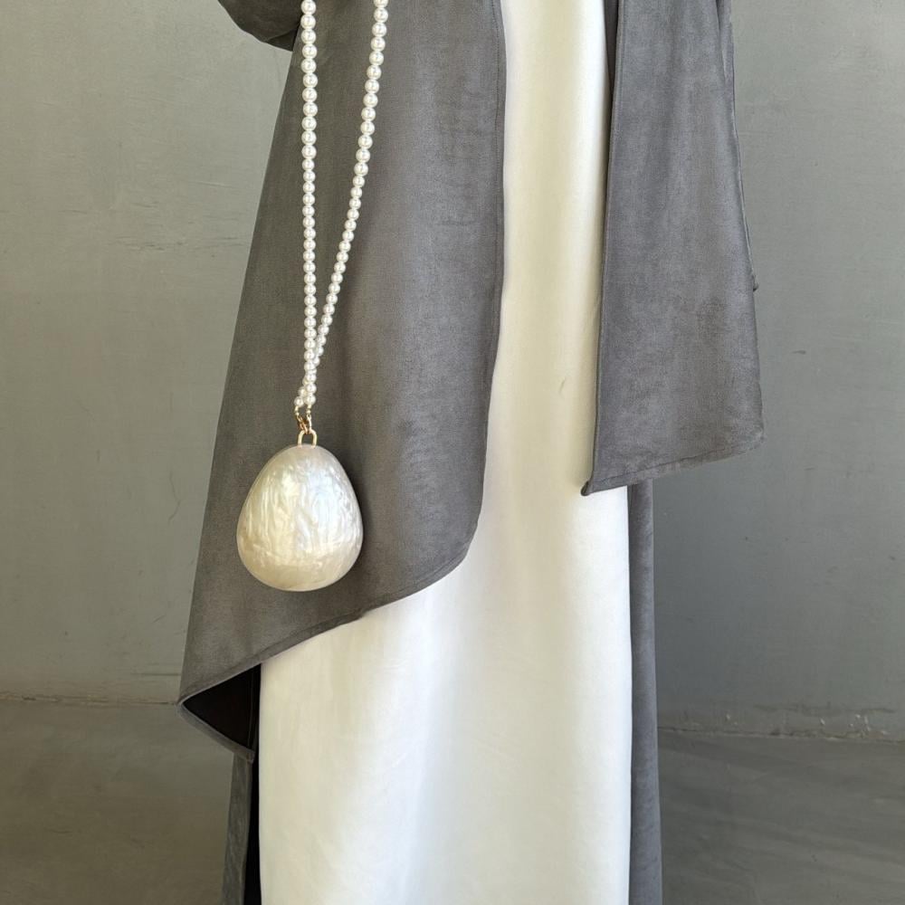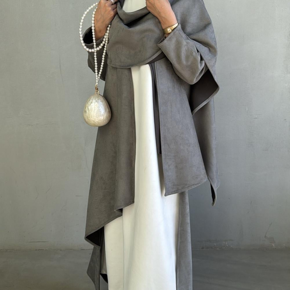 عبايه شامواه رصاصي كلوش مفتوحه من تحت ، مع شال .