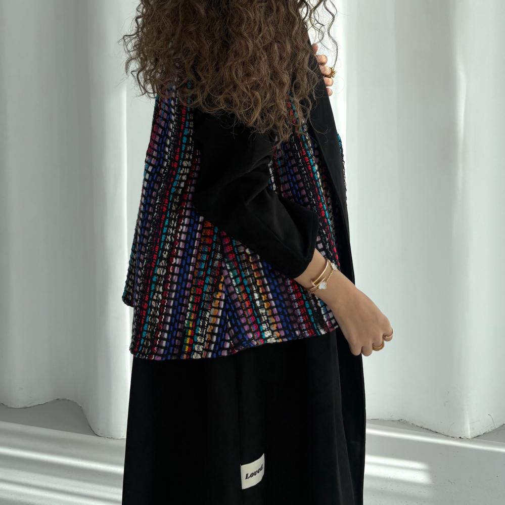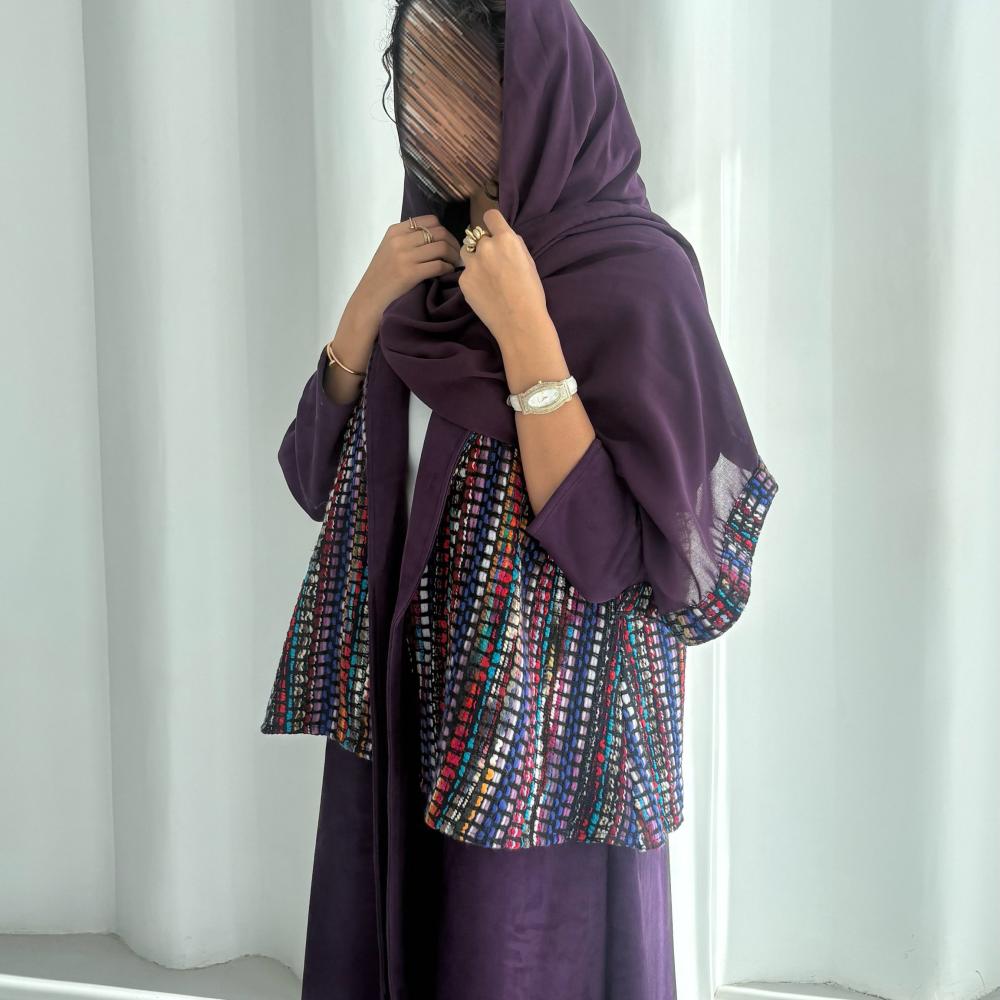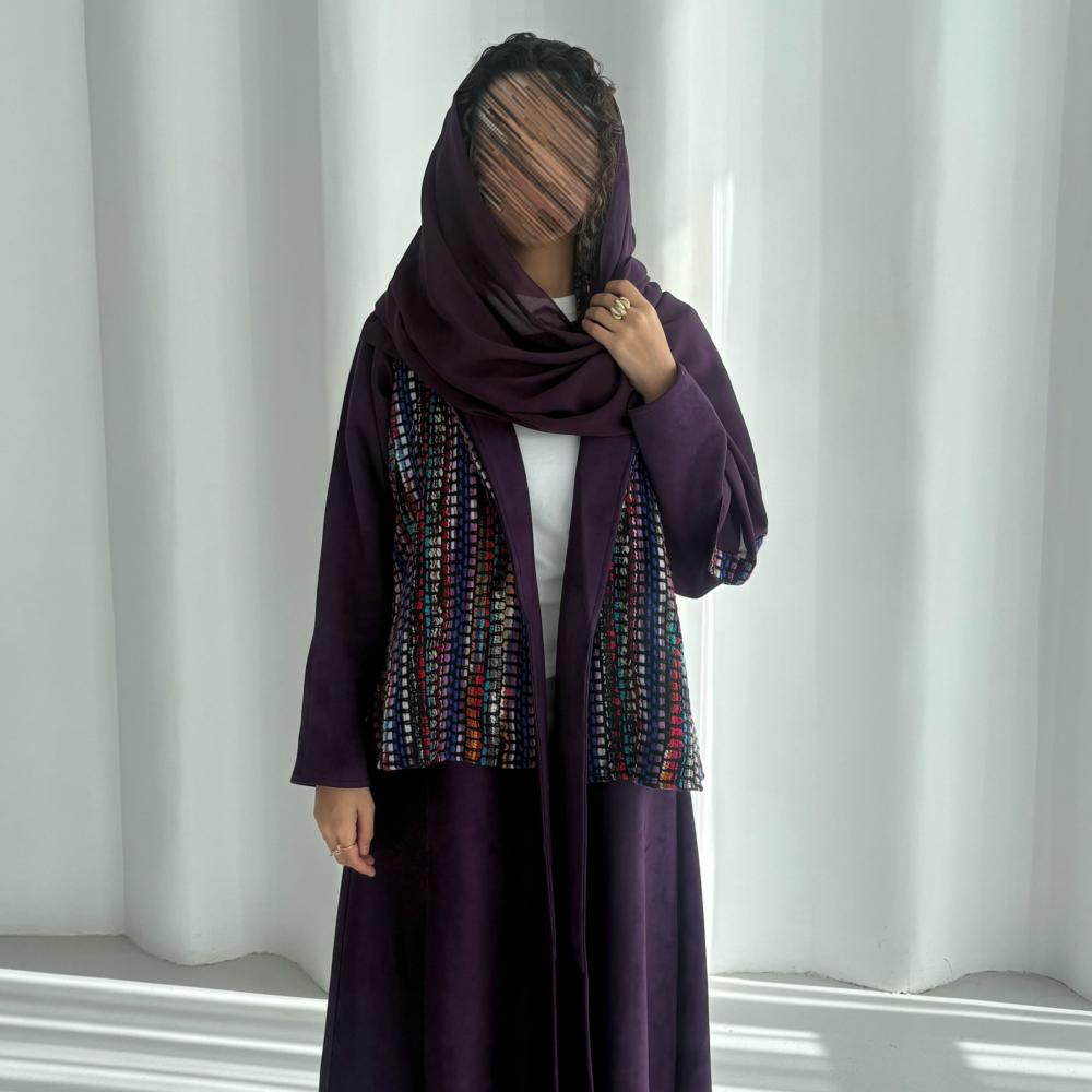 عبايه شامواه بنفسجي كلوش بياقه مع جاكيت صوف متحرك شامل الطرحهلون العبايه: بنفسجي ، اسودنأمل مراعاه العبايه بالغسيل