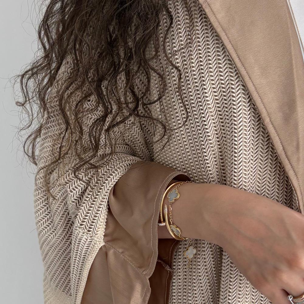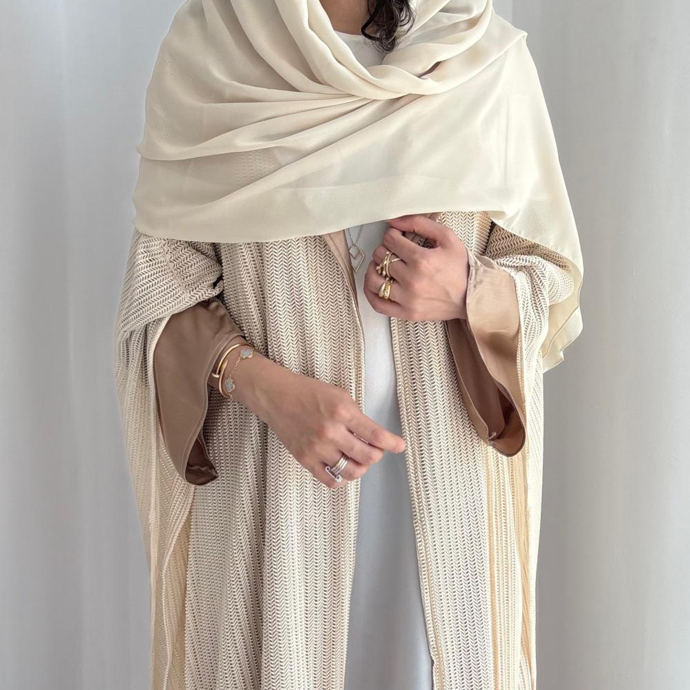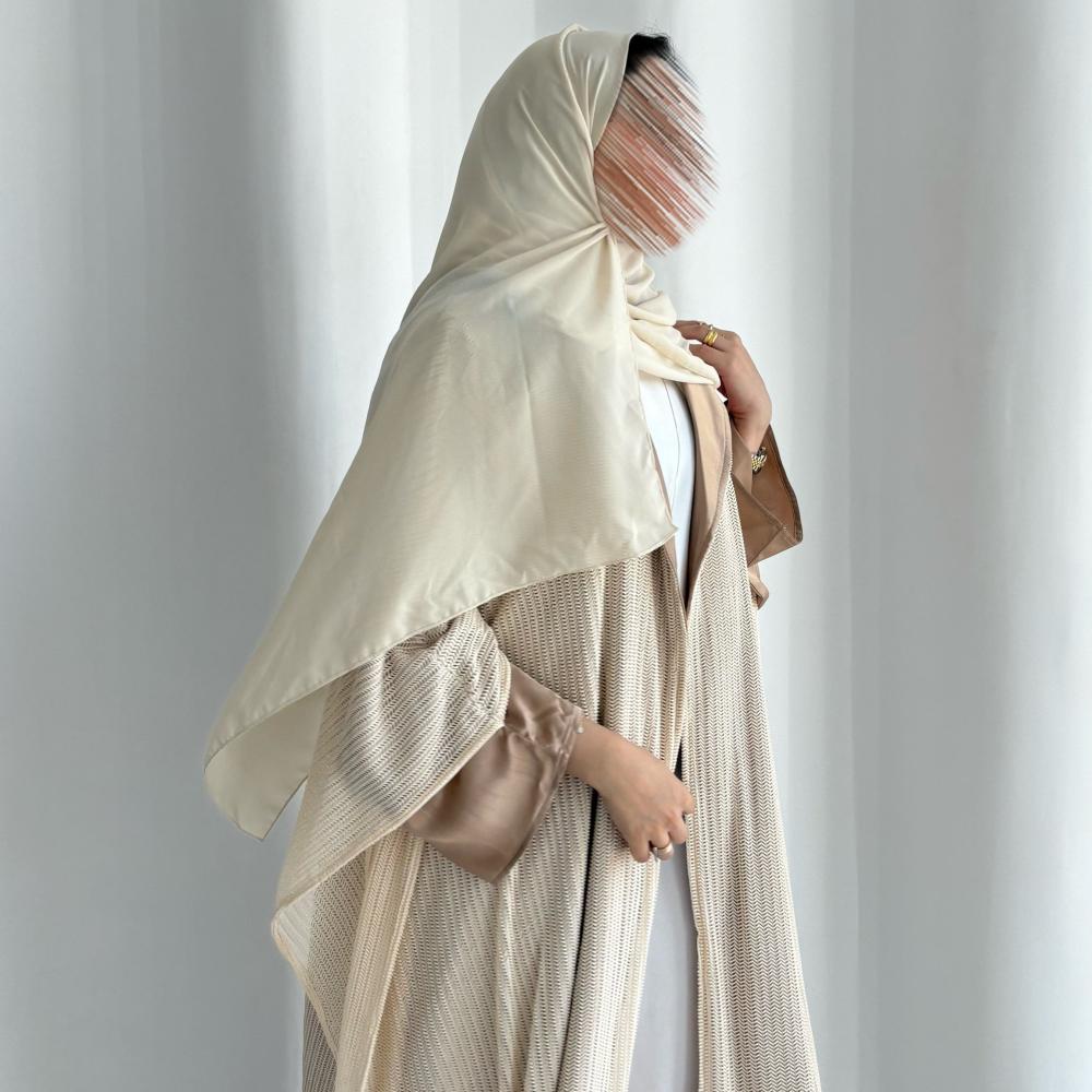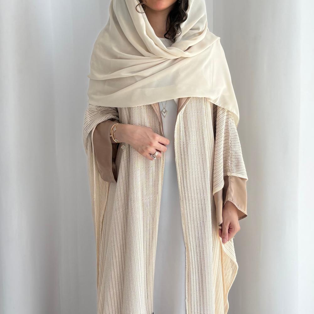 القماش: حرير ،مبطن بقماش شبكة بيج شامل الطرحهالقصه: كلوش ، ومبطن ب قماش شبكه نص بشت ملاحظه: نأمل مراعاه عند الغسيل