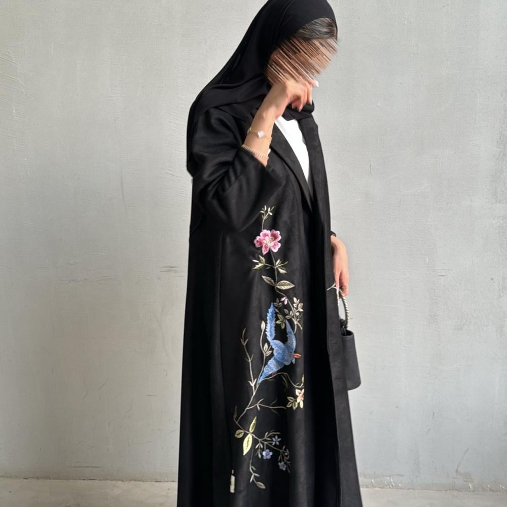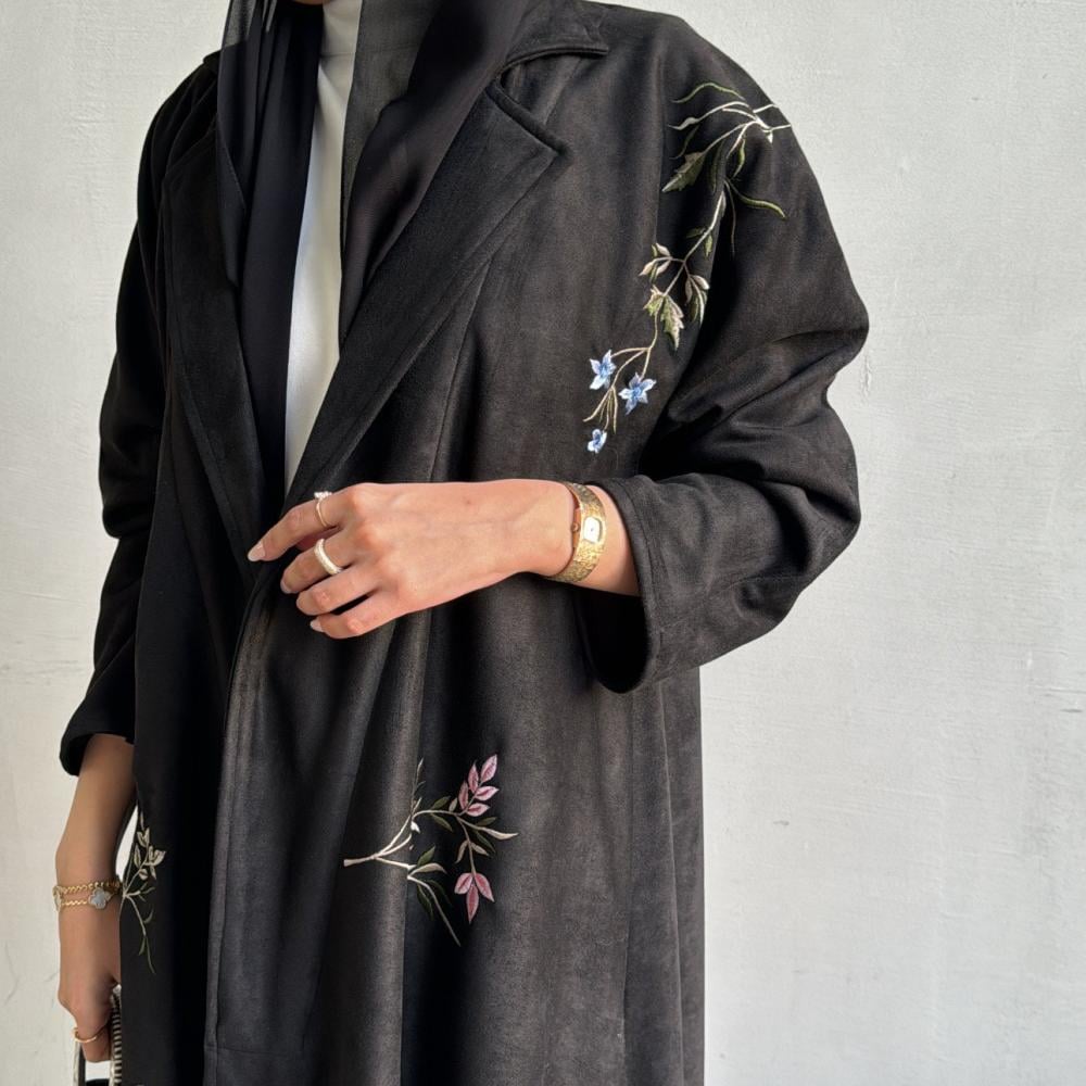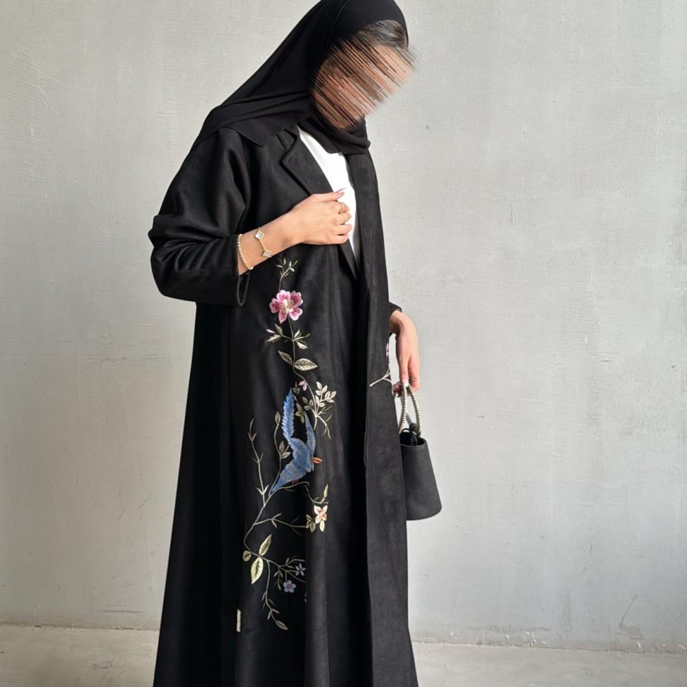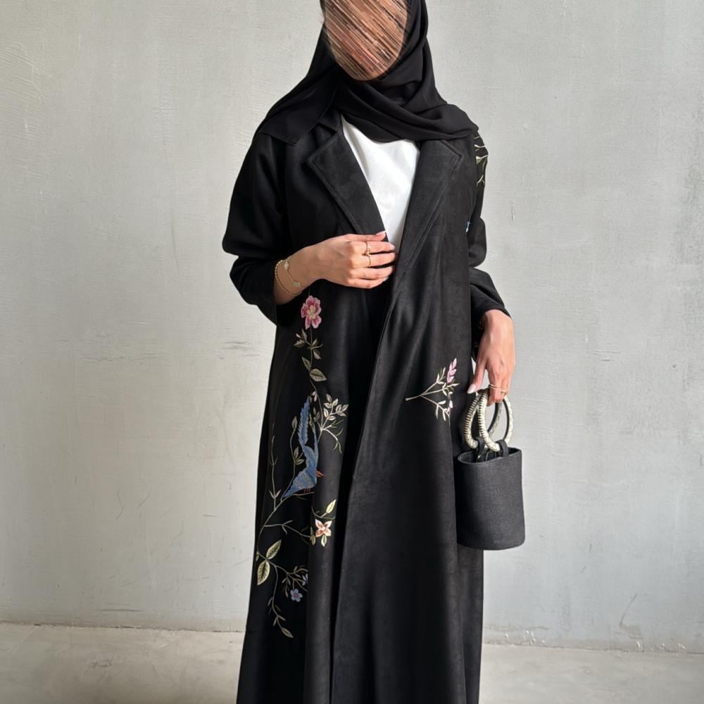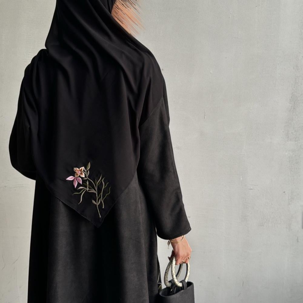 عبايه شامواه اسود ب تطريز امام العبايه و نهايه الطرحه