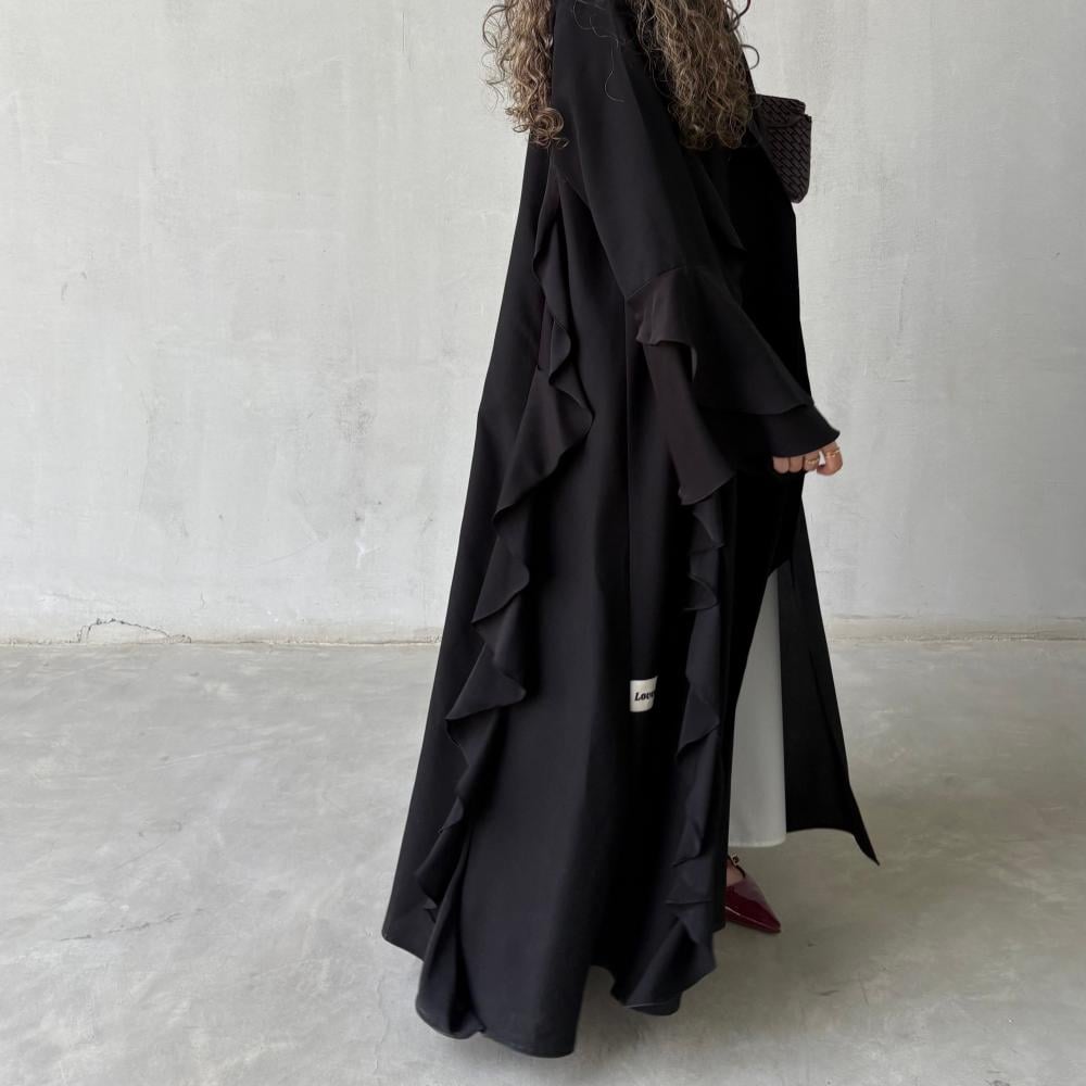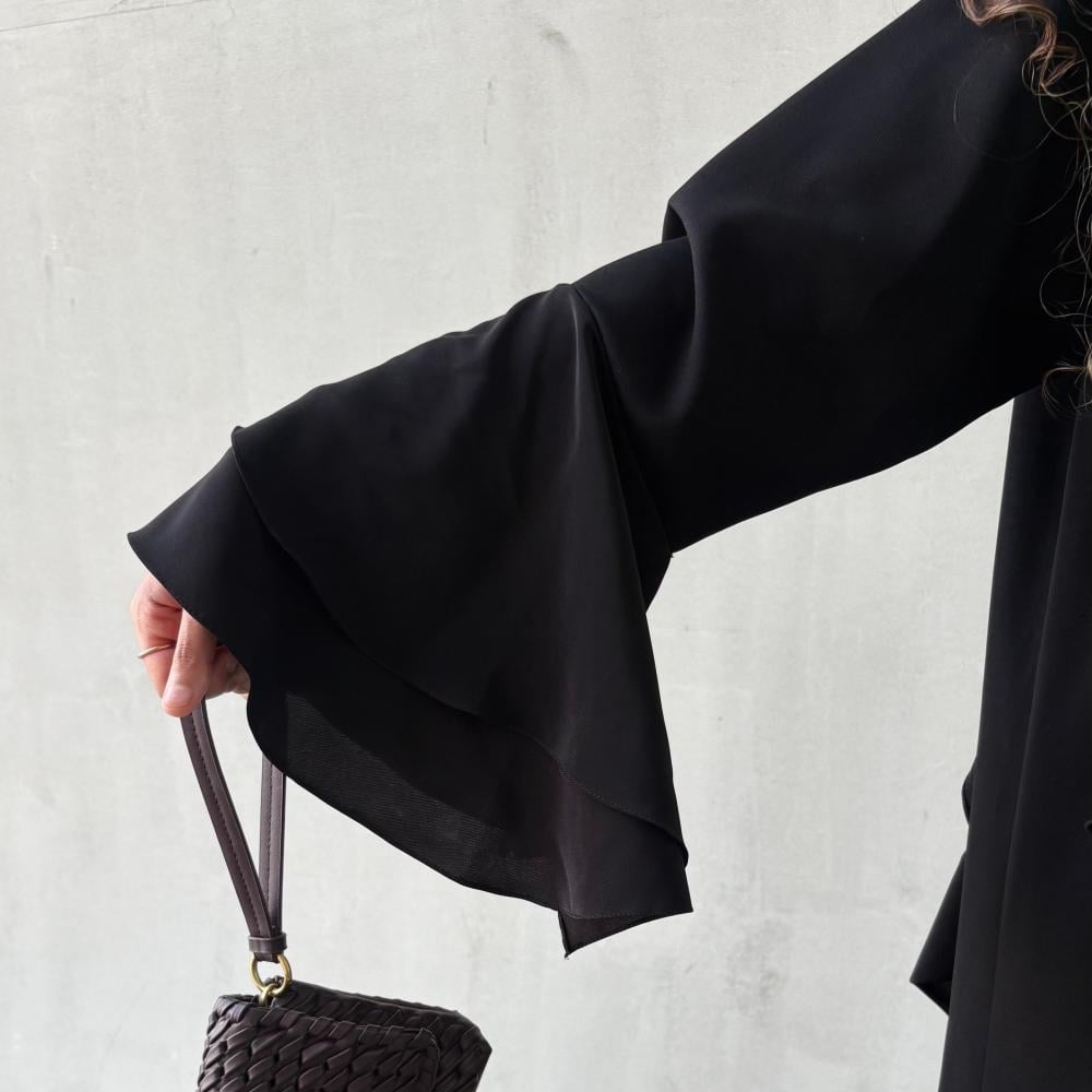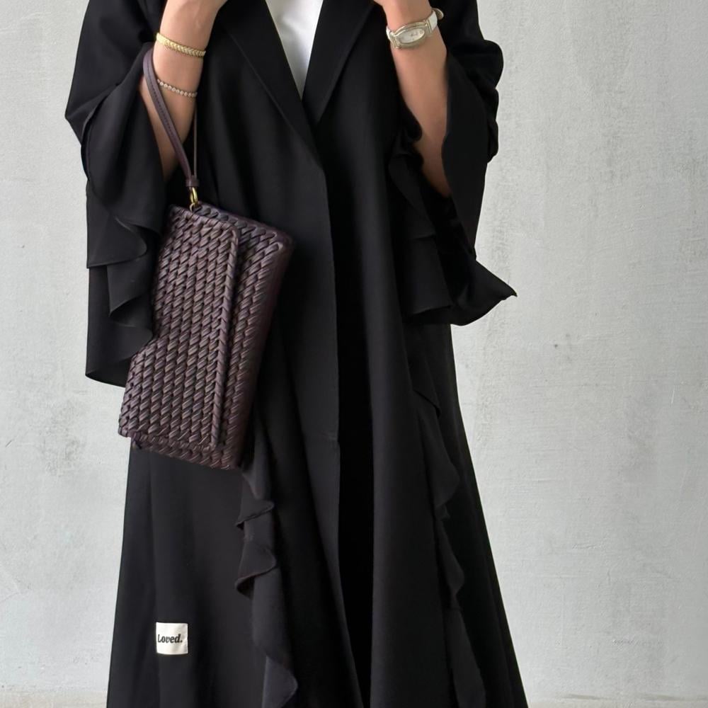 عبايه صيفي كريب اسود بياقه ، و قماش مموج عالجوانب و نهايه الاكمام مكسر ، شامل الطرحه • نأمل مراعاه العبايه بالغسيل