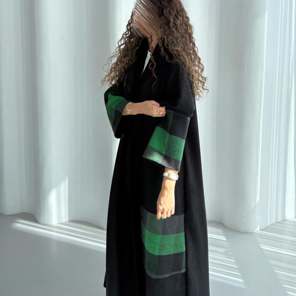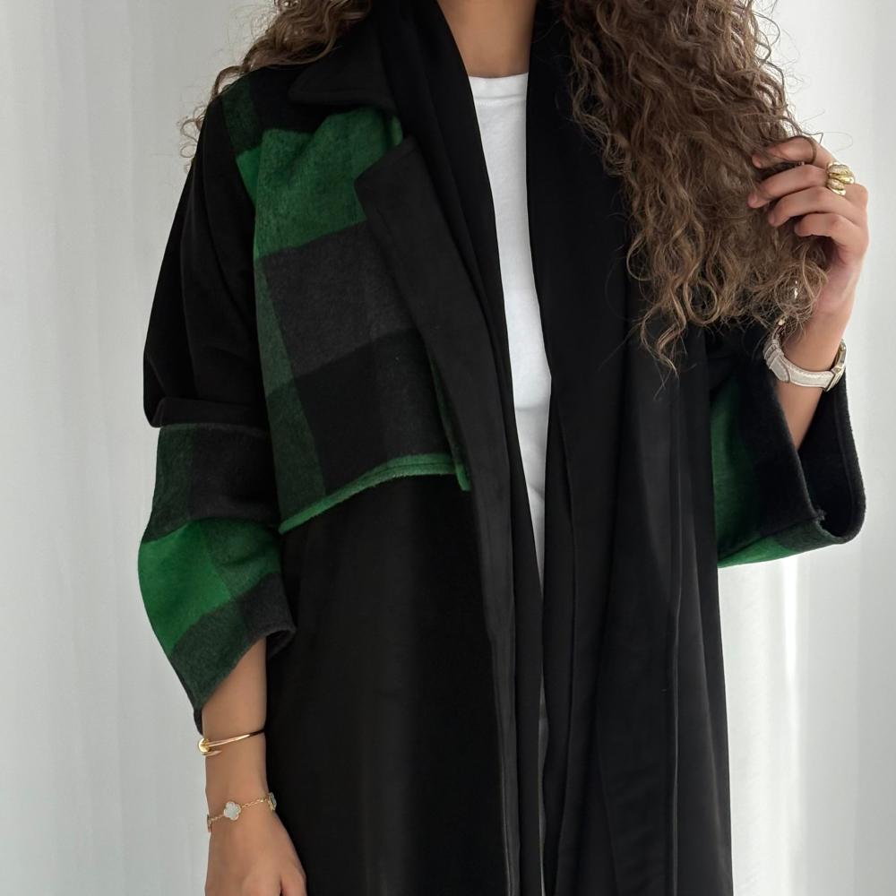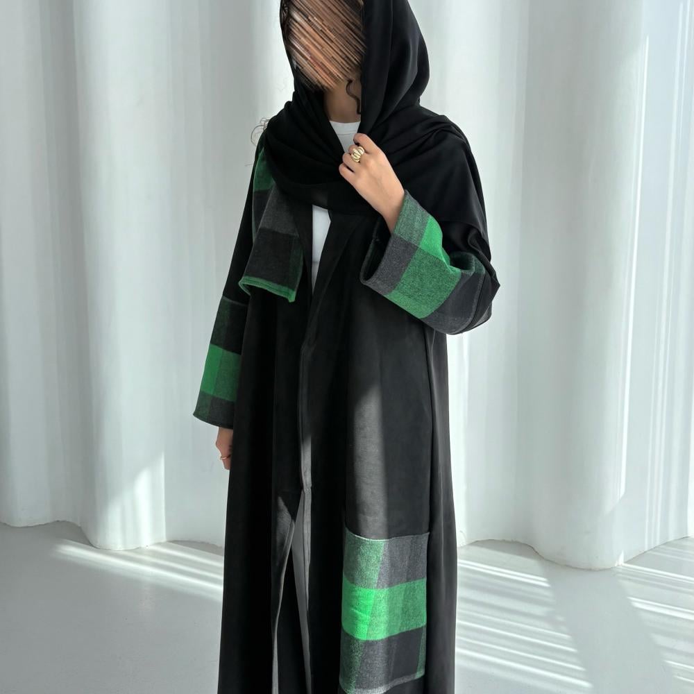 شامواه اسود كلوش ب ياقه و اكمام خضرا ، شامل الطرحه