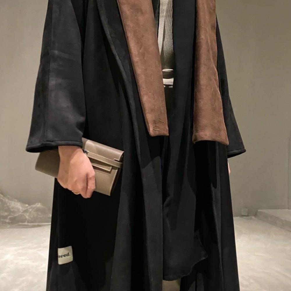 شامواه اسود مع جاكيت شامواه بني ، ينلبس من جوا وبرا وممكن ينلبس بدون الجاكيت ، شامل الطرحه