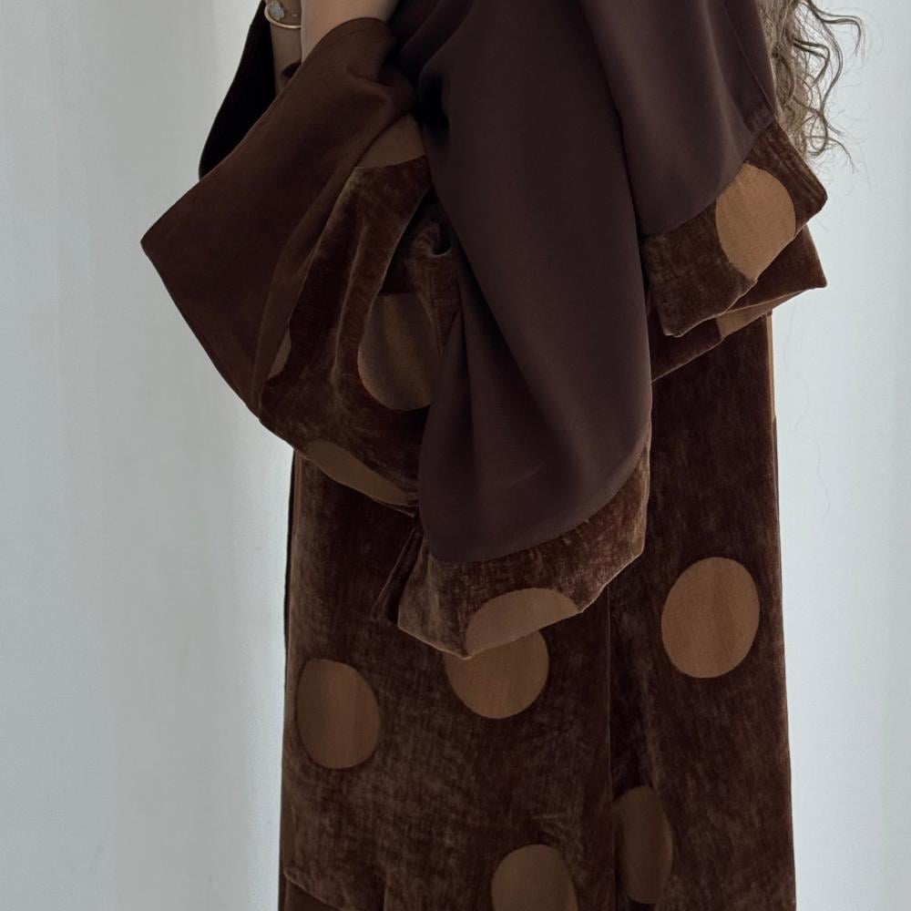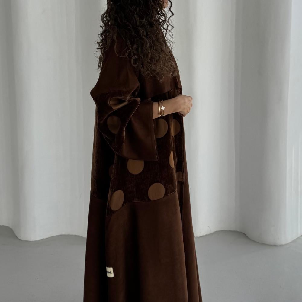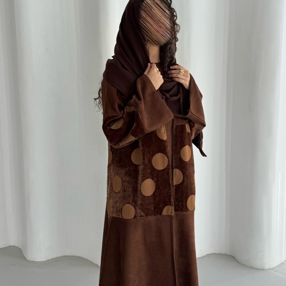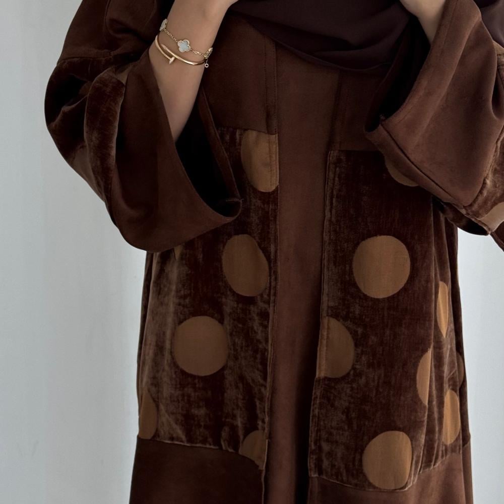 شامواه بني كلوش و بالنص مخمل بني منقط ، شامل الطرحه